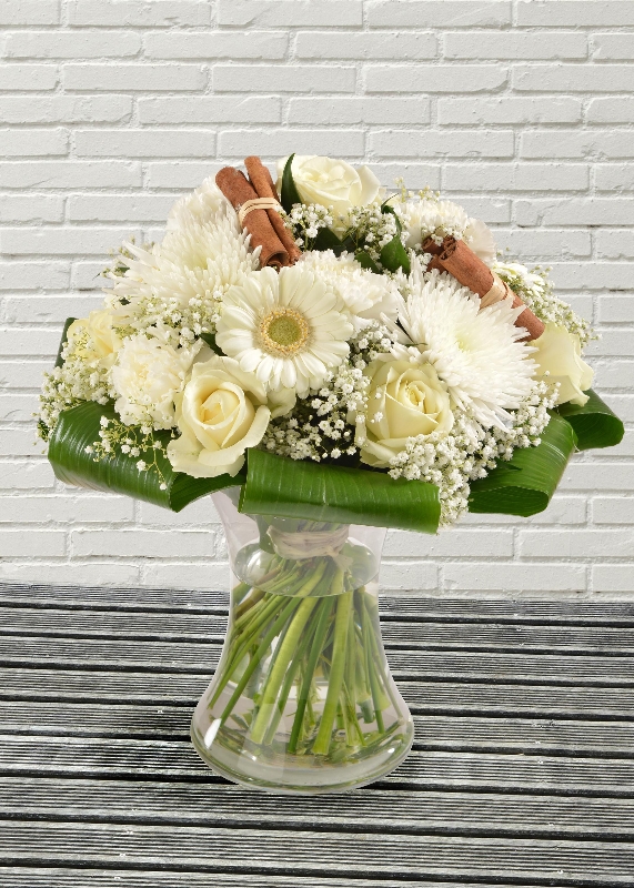 A Stunning handtied bouquet in whites and greens, the perfect Winter and Festive gift.